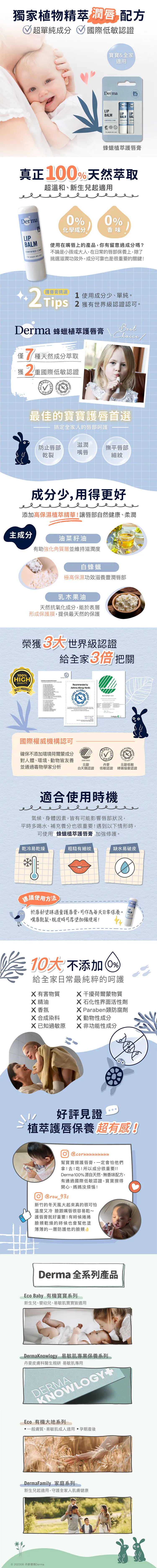 Derma小燭樹植萃護唇膏擁有北歐人體低害與環保國際認證
