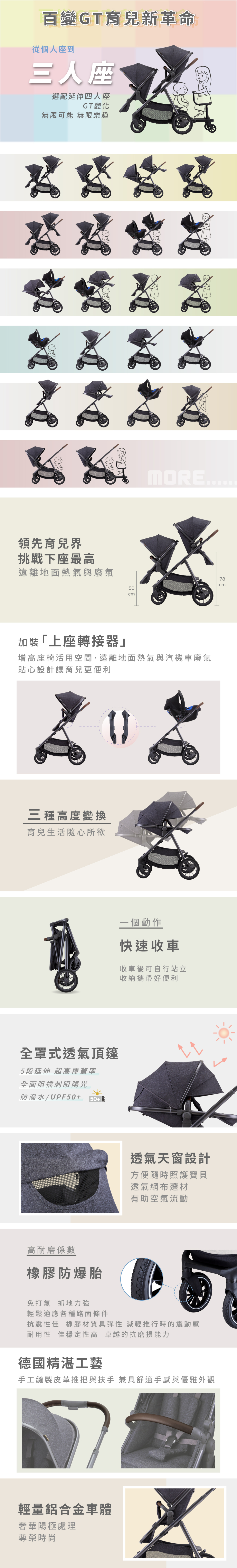 德國 ABC Design GT 百變三人座 雙人推車 (雙人模式/雙座椅/雙寶推車) -多款可選