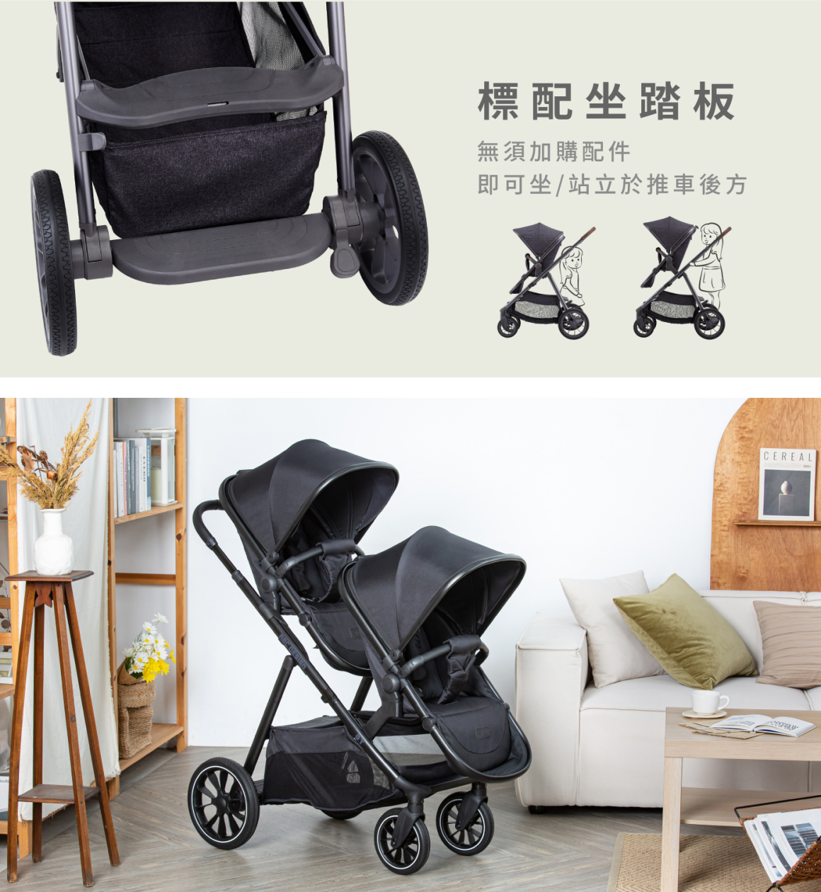 雙座位使用:上座-新生兒至4歲,下座-新生兒至4歲(0m+至6m新生兒建議可搭配GT立體透氣新生兒睡墊或提籃汽座乘坐)。