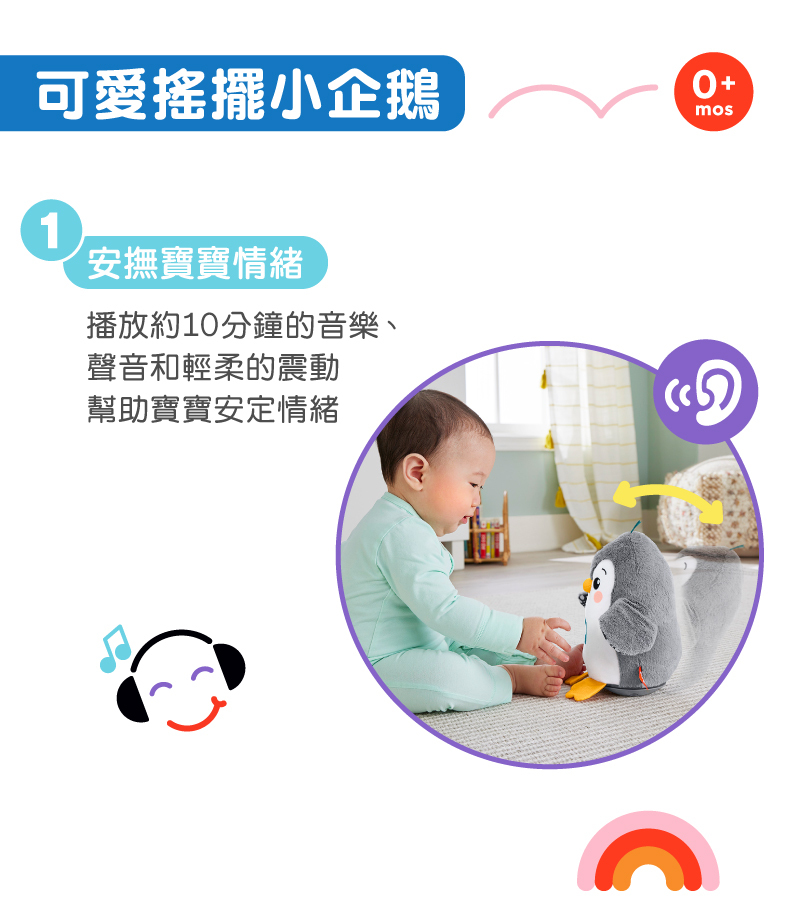 • 活潑可愛的費雪可愛搖擺小企鵝。