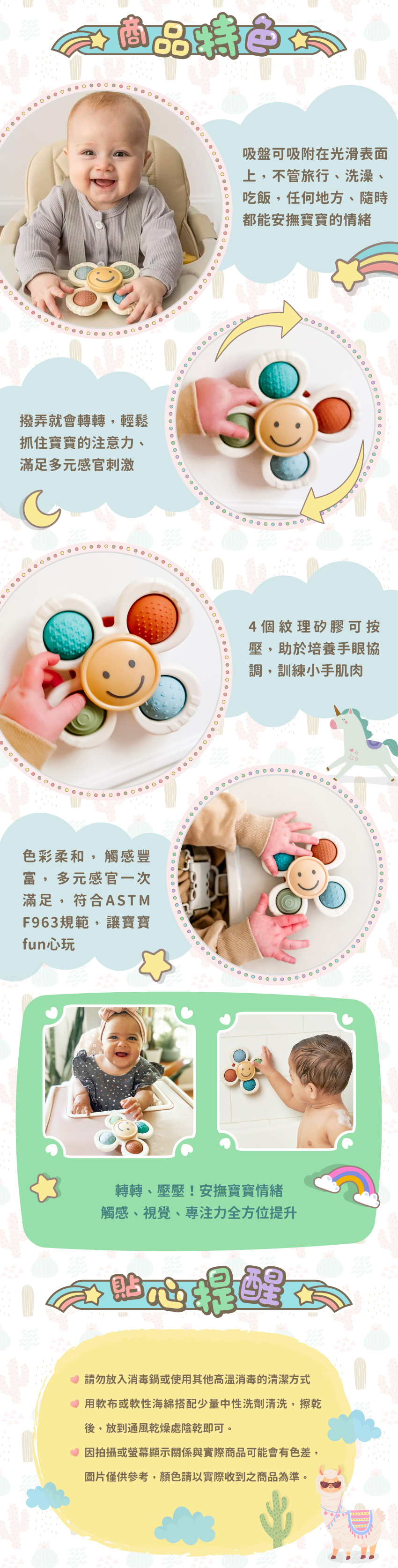 • 4種紋理矽膠可按壓,增進寶寶觸感發展