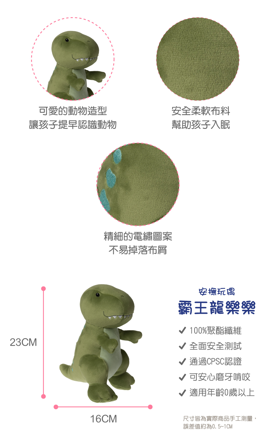 -活潑鮮豔吸引寶寶的配色、刺繡的眼睛和五官細節。