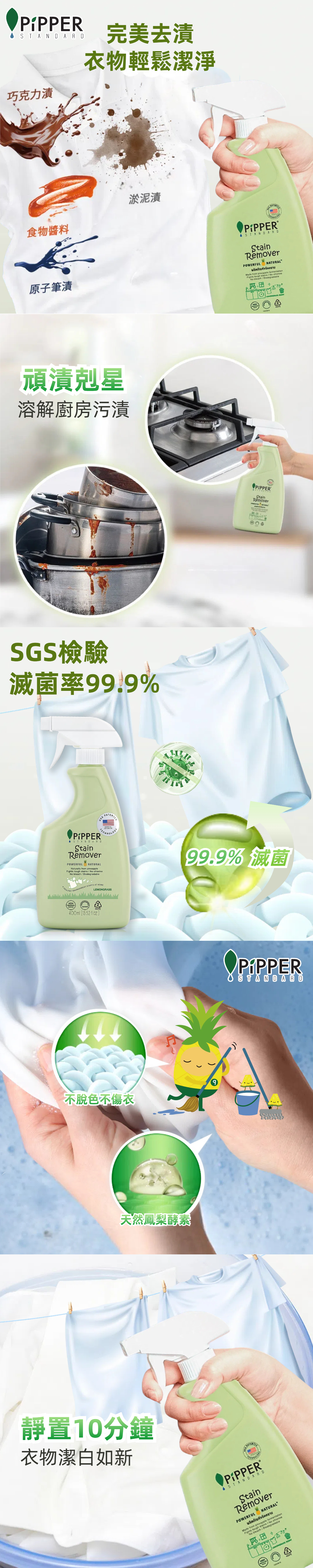 美國 PiPPER STANDARD 沛柏鳳梨酵素去漬劑檸檬草 400ml