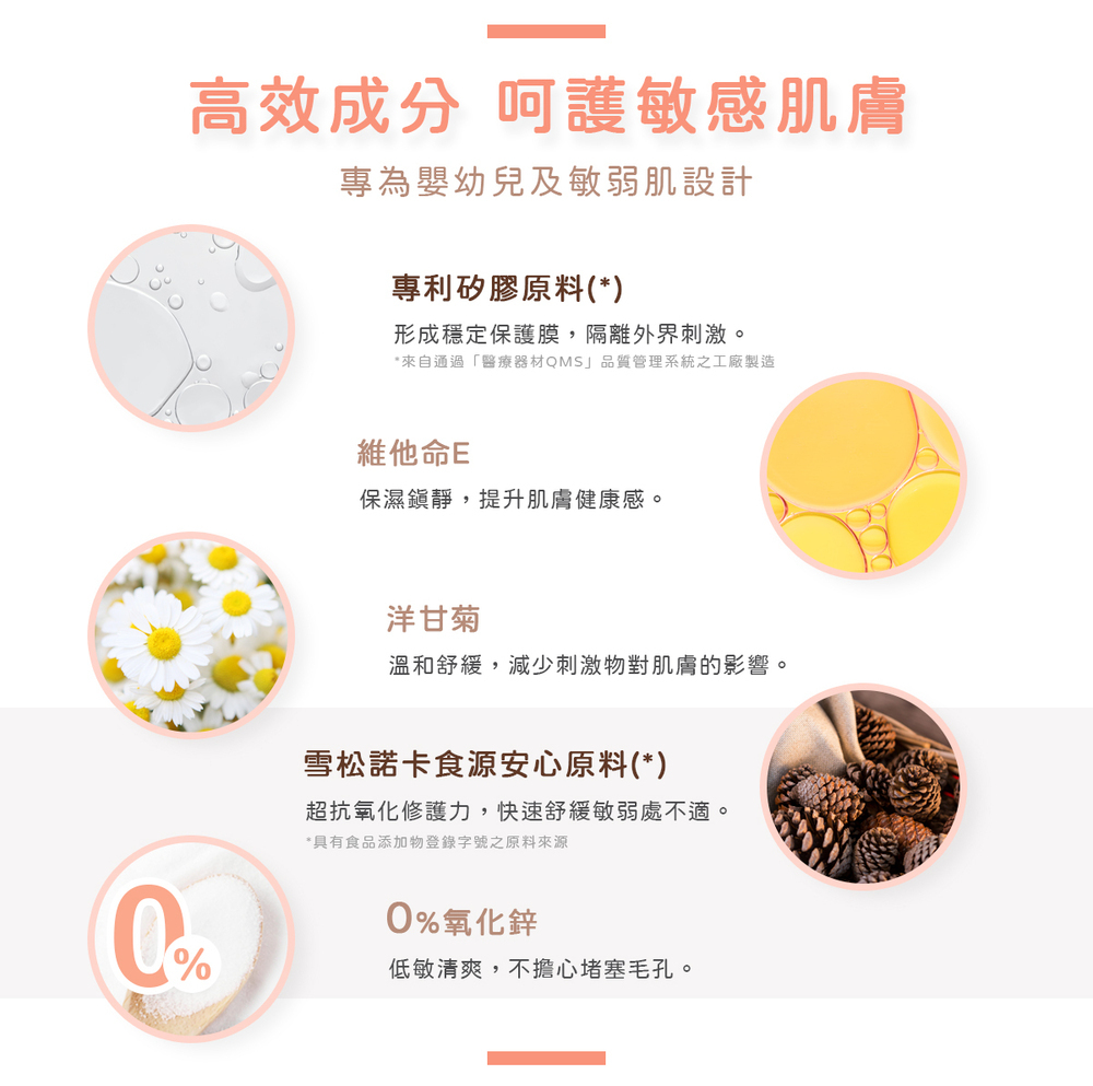 能夠幫助嬌嫩或敏感的肌膚隔離水分和細菌,保持乾爽與舒適。