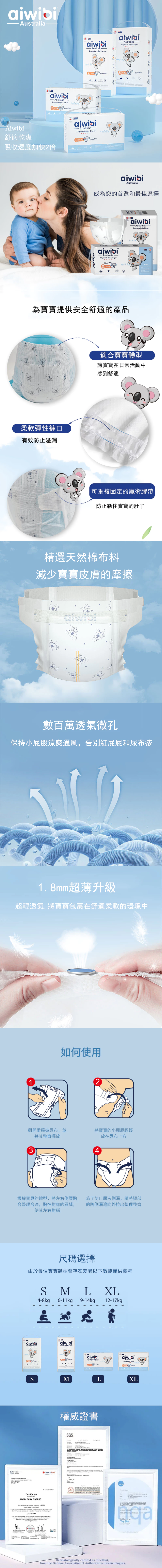 澳洲 aiwibi  愛薇彼 清新乾爽紙尿褲 黏貼型紙尿褲 S-XL (黏貼型/紙尿褲/尿布)