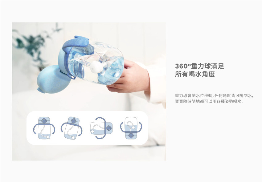 • 重力球吸管設計,360°重力球滿足所有喝水角度,重力球會随水位移動,任何角度皆可喝到水。