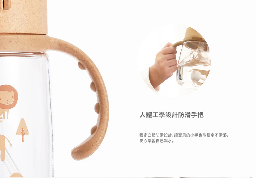 • 人體工學設計防滑手把,獨家凸點防滑設計,讓寶貝的小手也能穩拿不滑落。