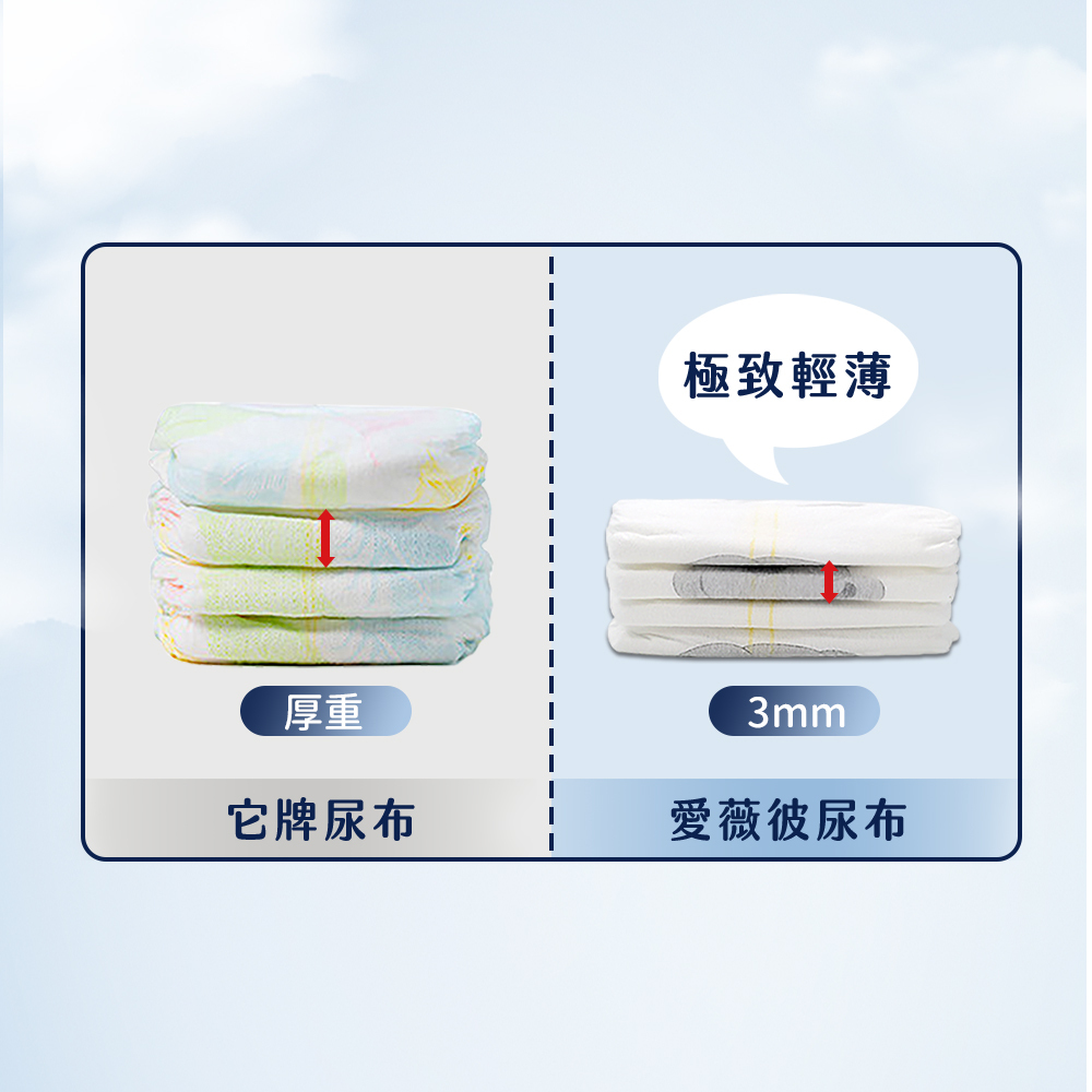 • 超薄、溫和的夜間嬰兒尿布。