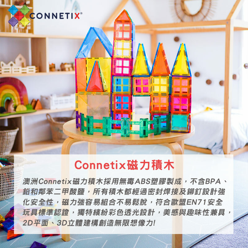 澳洲Connetix磁力積木採用無毒ABS塑料製成,不含BPA、鉛和鄰苯二甲酸鹽