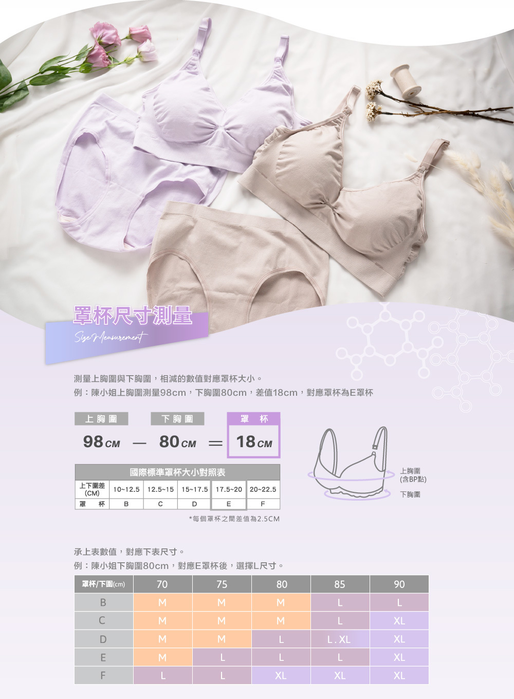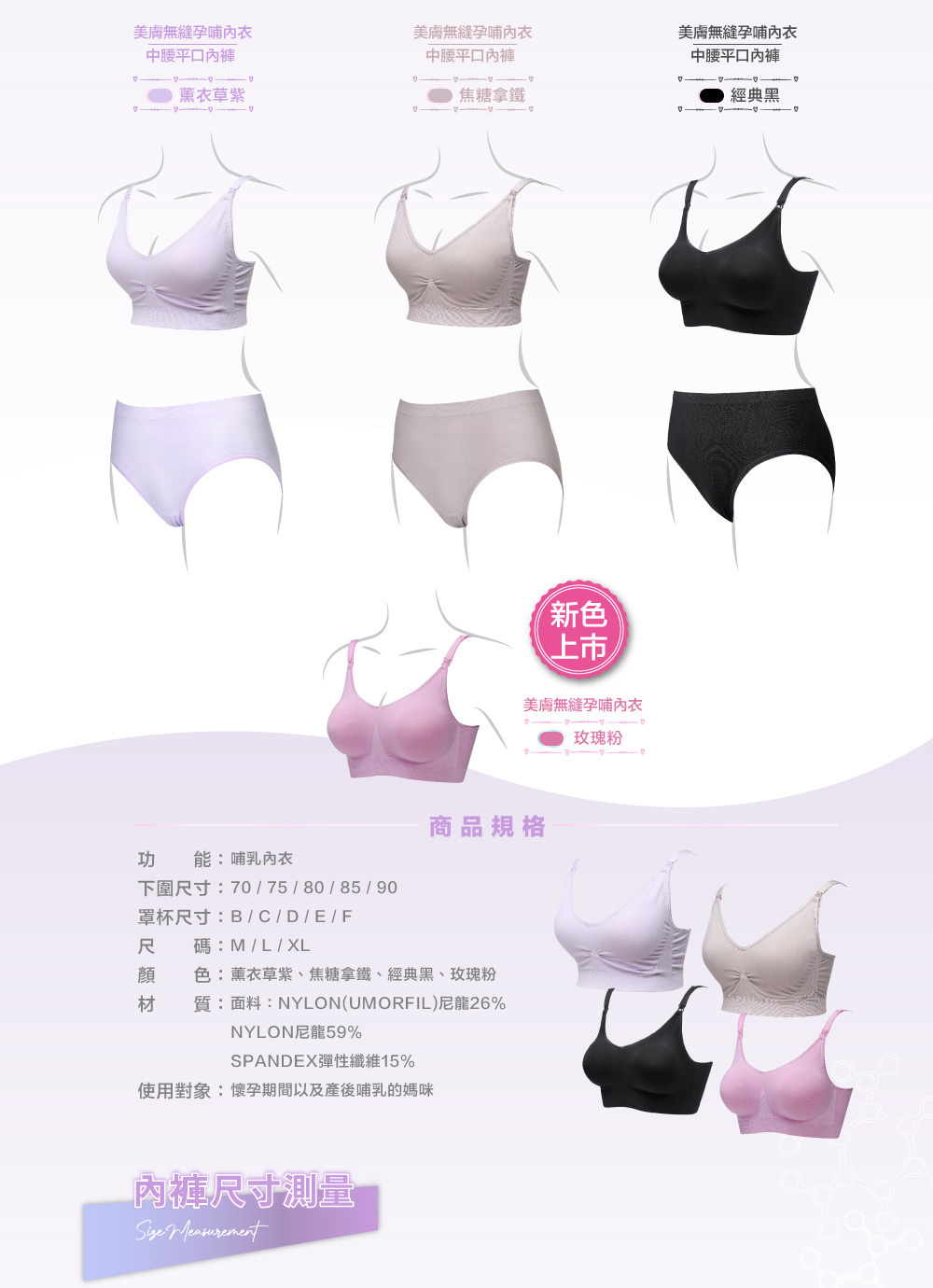 -下圍尺寸:70 / 75 / 80 / 85 / 90