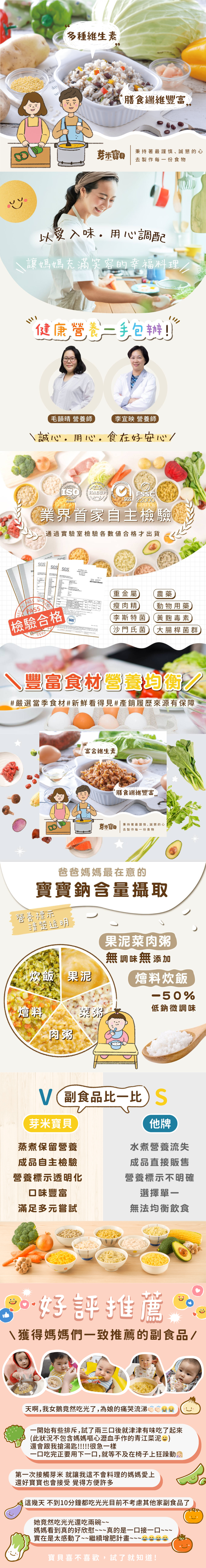 此餐點口感較略明顯顆粒感,請依寶寶吞嚥咀嚼能力適當調整,並放慢速度、小口餵食