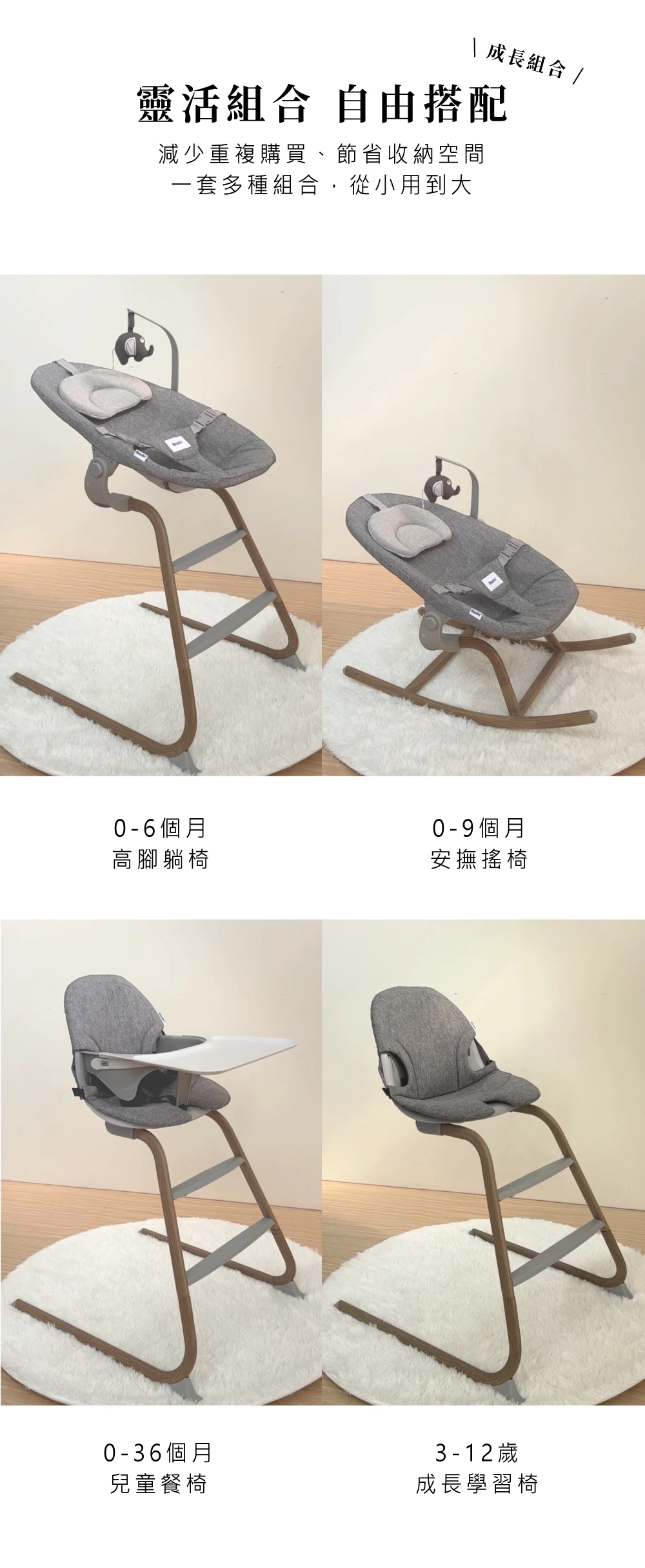 從新生兒到幼童,都能用的多功能搖椅 + 餐椅