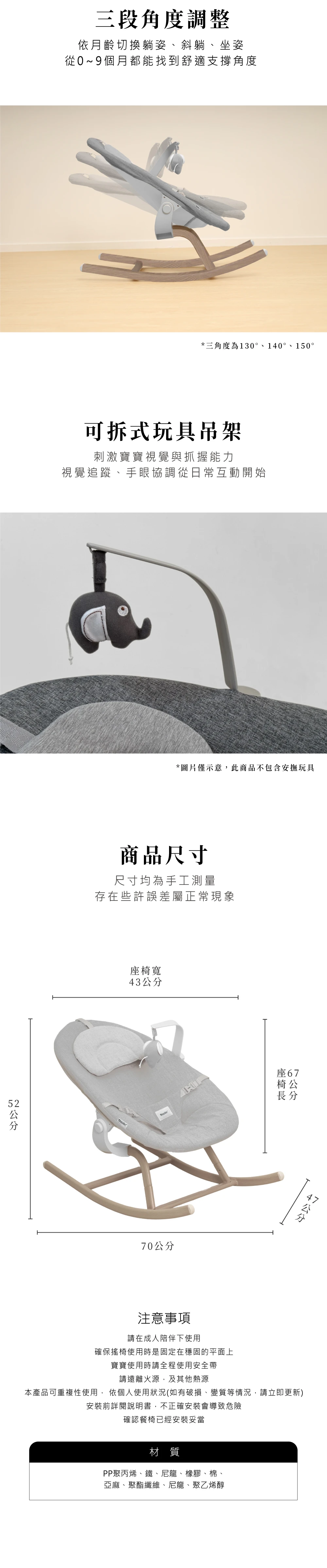 - 安撫搖椅模式(0~9個月)
