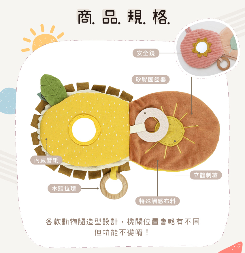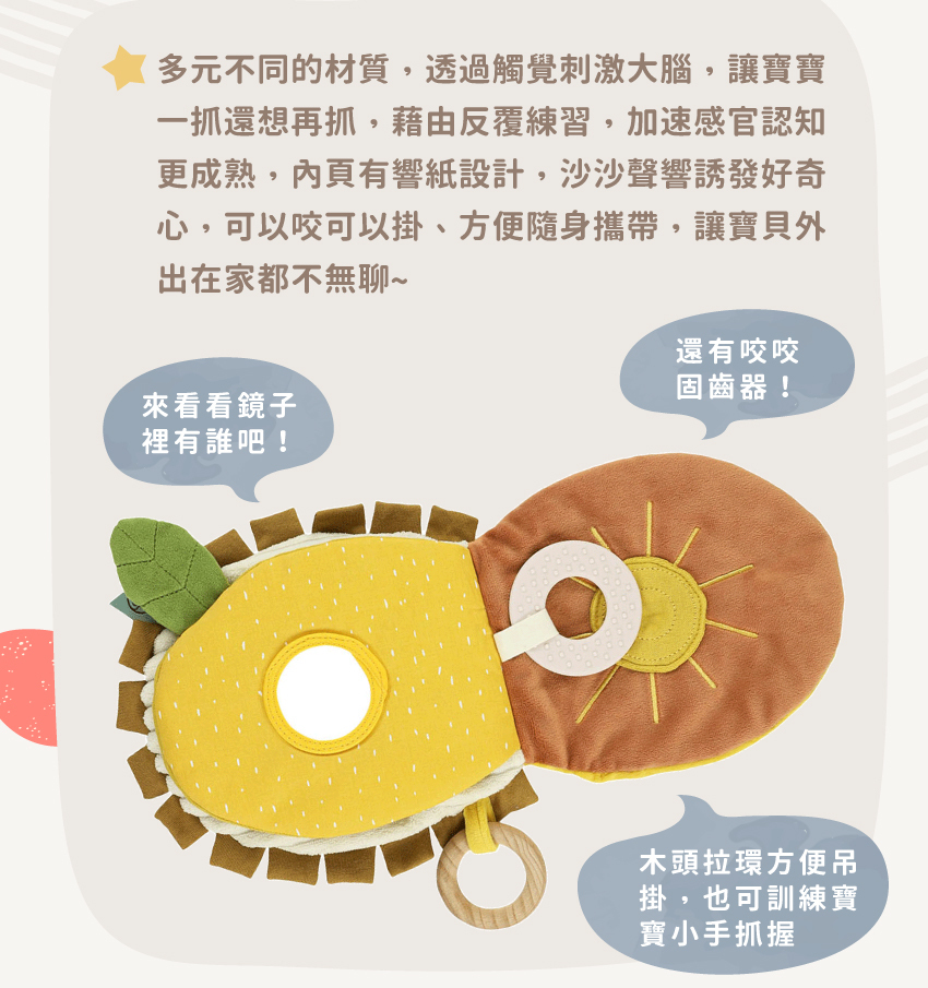 -柔軟布書內藏響紙,會發出沙沙聲唷
