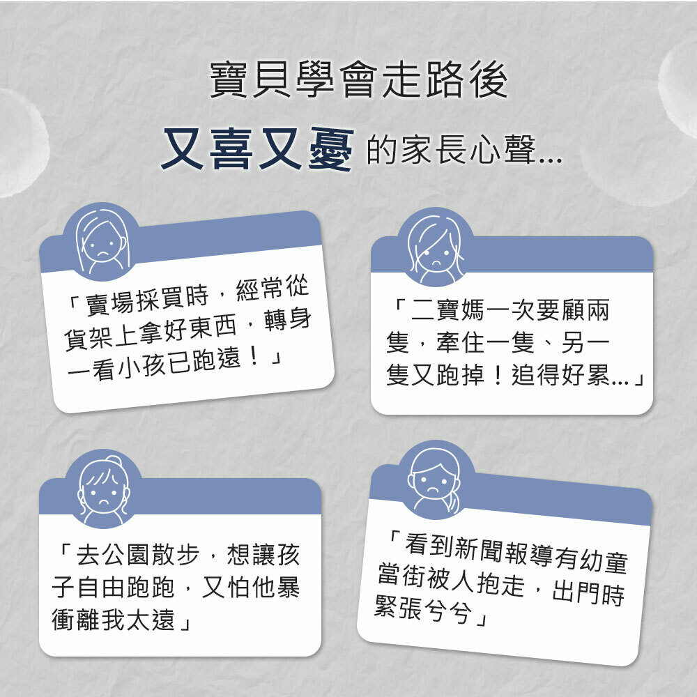 • 外出時給孩子一個保障,讓您時刻放心,提升兒童安全性