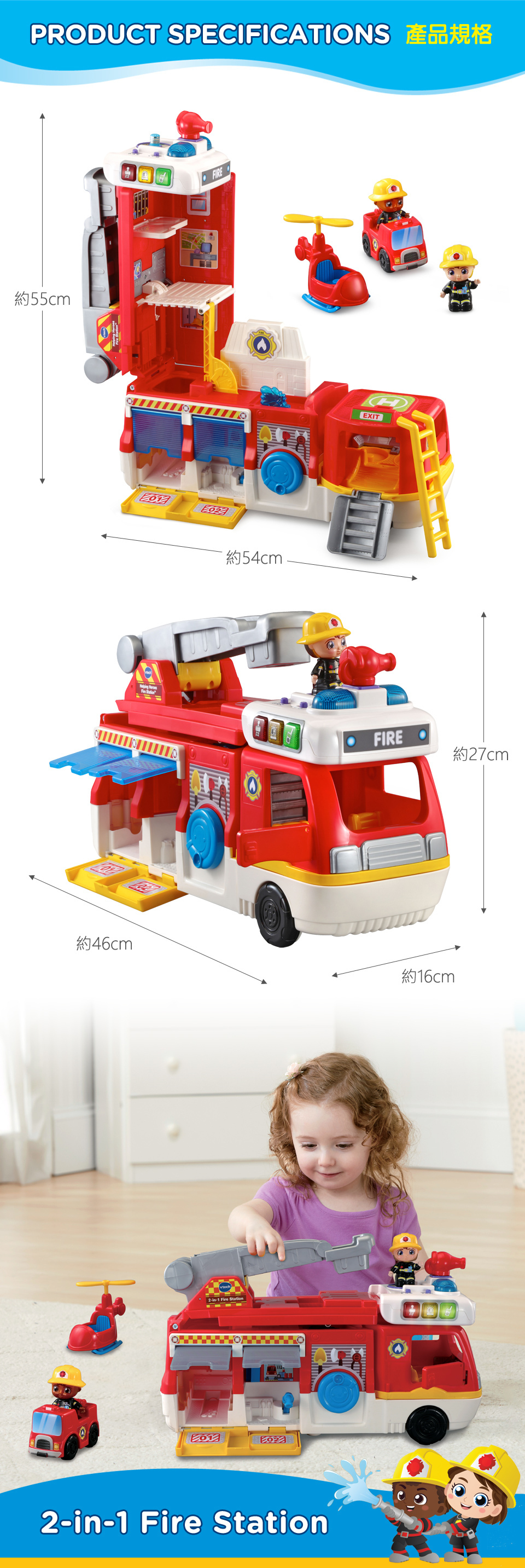 ‧2合1超級組合玩法,輕鬆在消防局和消防車之間轉換。