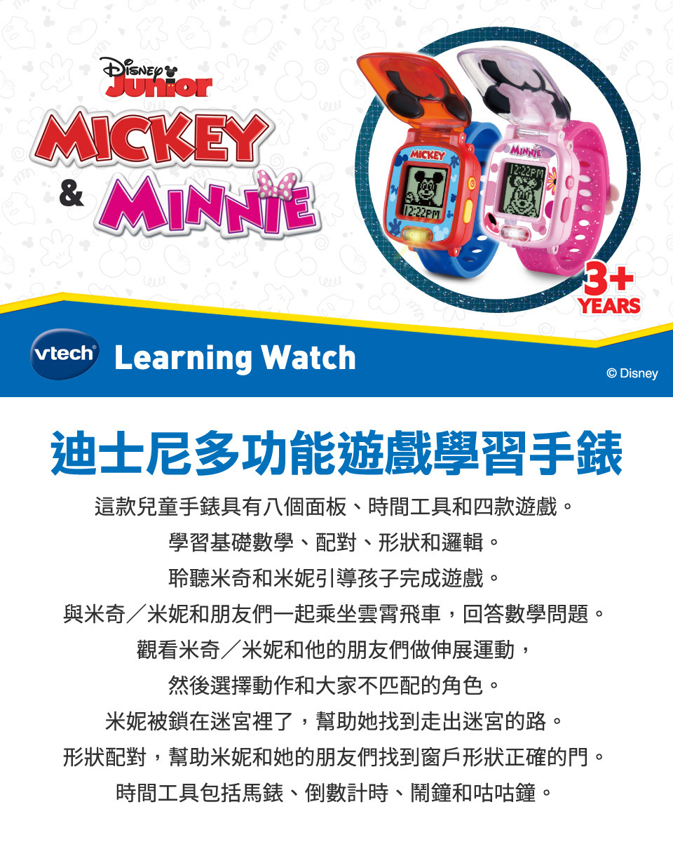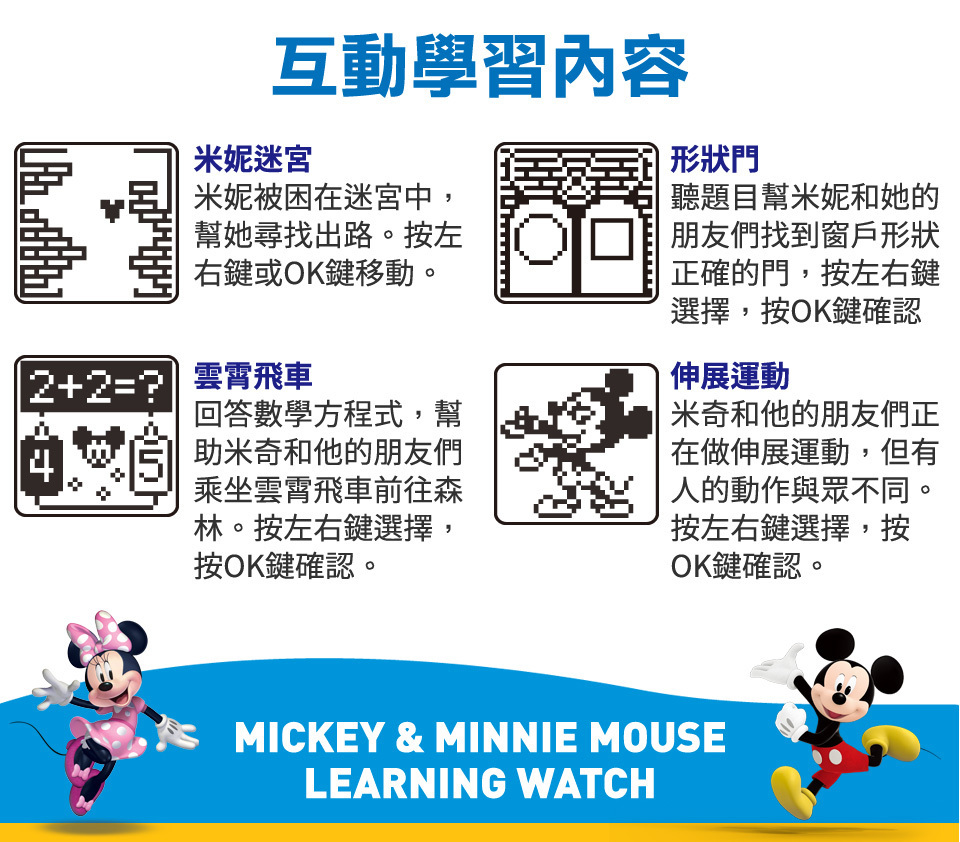 這款兒童手錶具有八個面板、時間工具和四款遊戲。