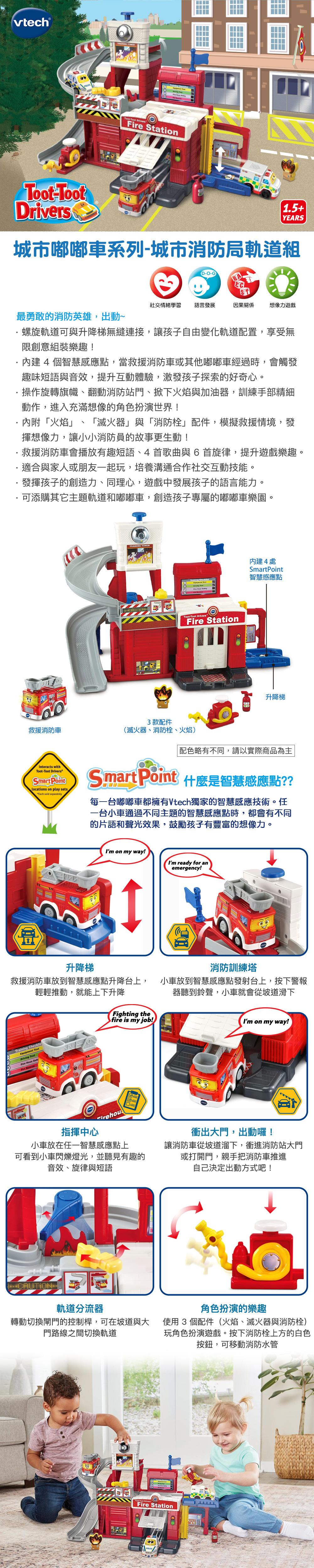 -內建 4 個智慧感應點,當救援消防車或其他嘟嘟車經過時,會觸發趣味短語與音效