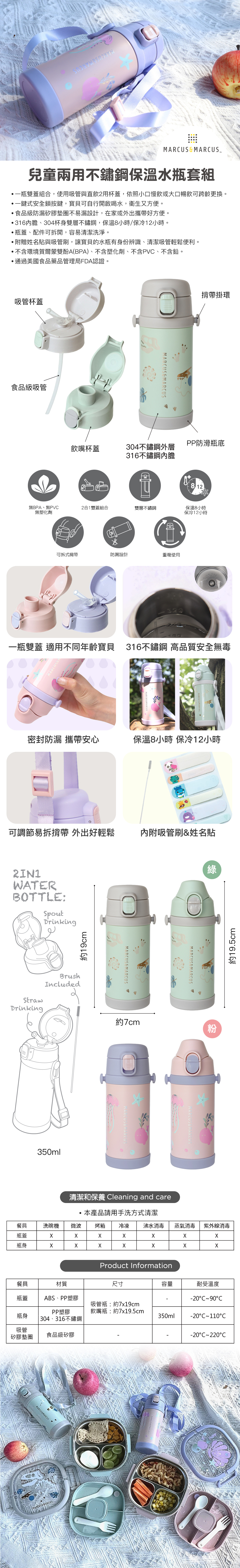 品名:兒童兩用不鏽鋼保溫水瓶套組 (吸管+飲嘴)