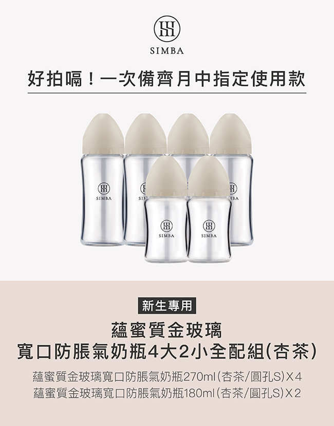 ⭐小獅王辛巴  蘊蜜質金玻璃寬口防脹氣奶瓶 4大2小