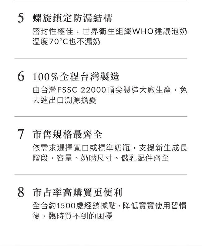 螺旋鎖定防漏結構,世界衛生組織WHO建議泡奶溫度70°C也不漏奶。