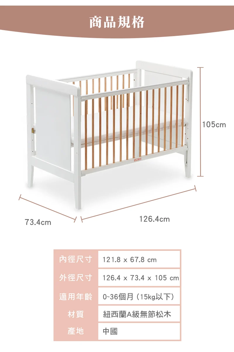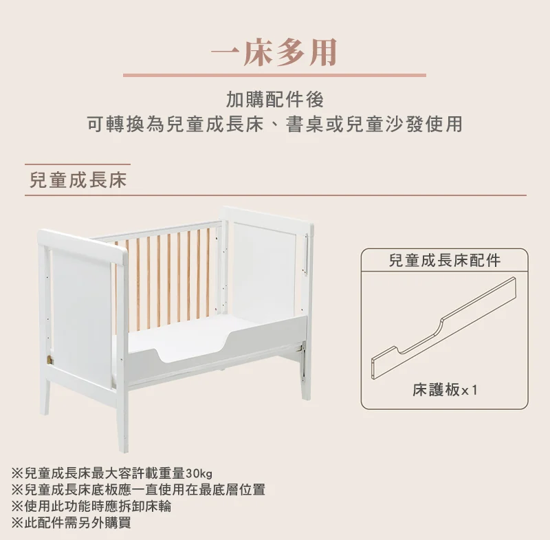材質:進口實木 (紐西蘭A級無節松木白色配原木色欄杆/圓棍欄杆)、塑膠、五金