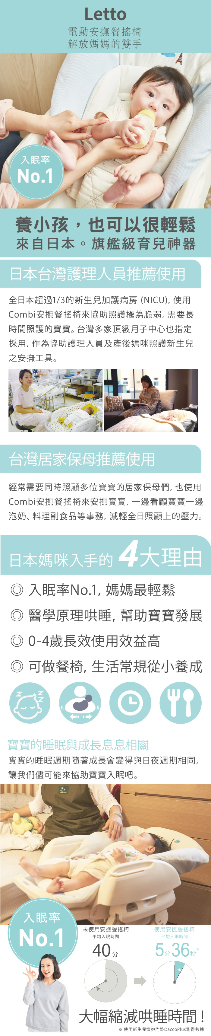 日本Combi Letto電動安撫餐搖椅 ST款-藍色巴黎