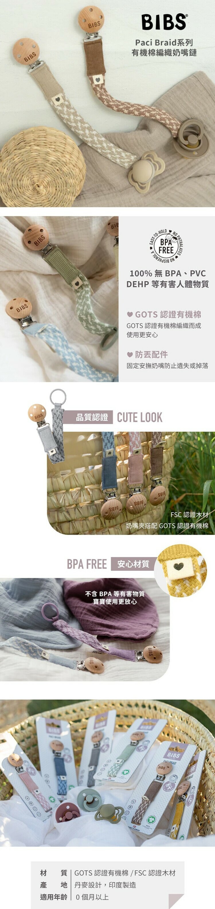 丹麥 BIBS 有機棉編織奶嘴鏈 Paci Braid系列 -多款可選
