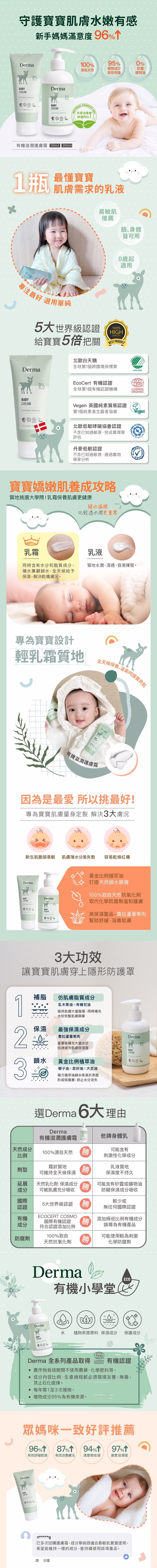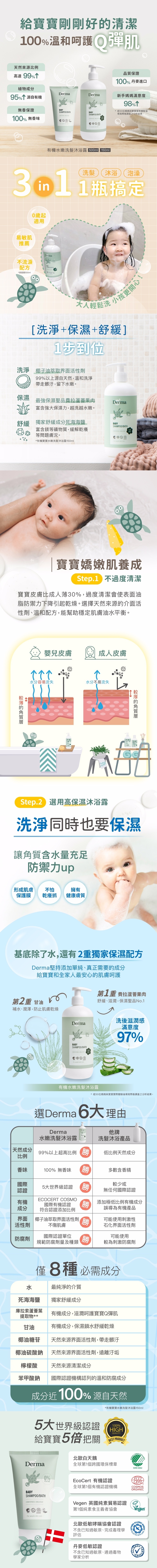 丹麥 Derma 寶寶家庭洗護三件組(水嫩洗髮沐浴露+滋潤護膚霜+舒敏萬用膏)
