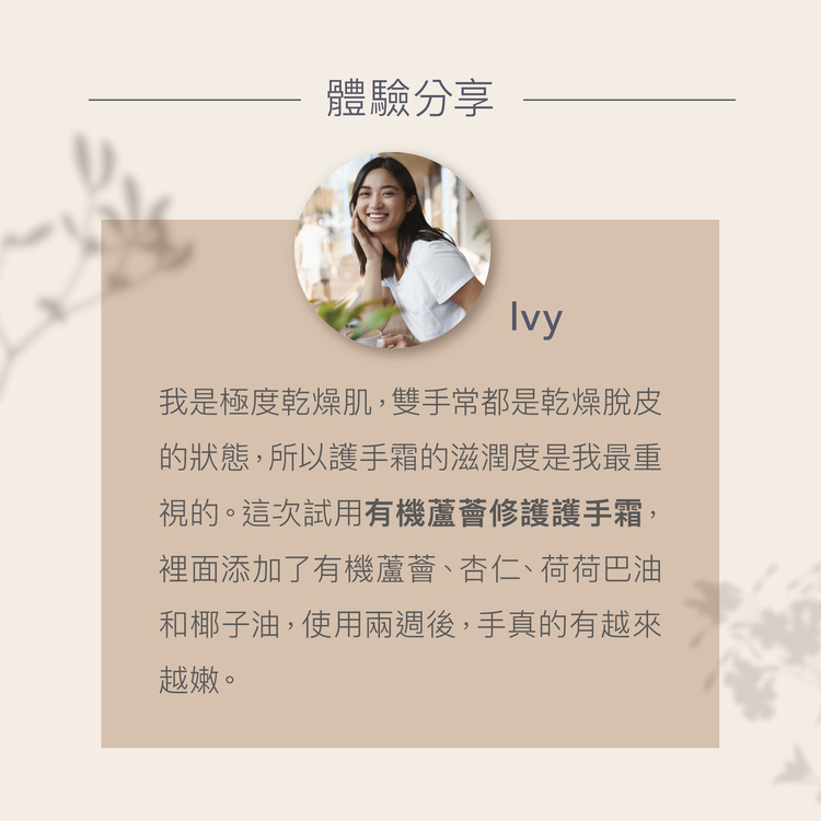 -堅持使用有機低致敏成分,及天然植萃精華滋養肌膚