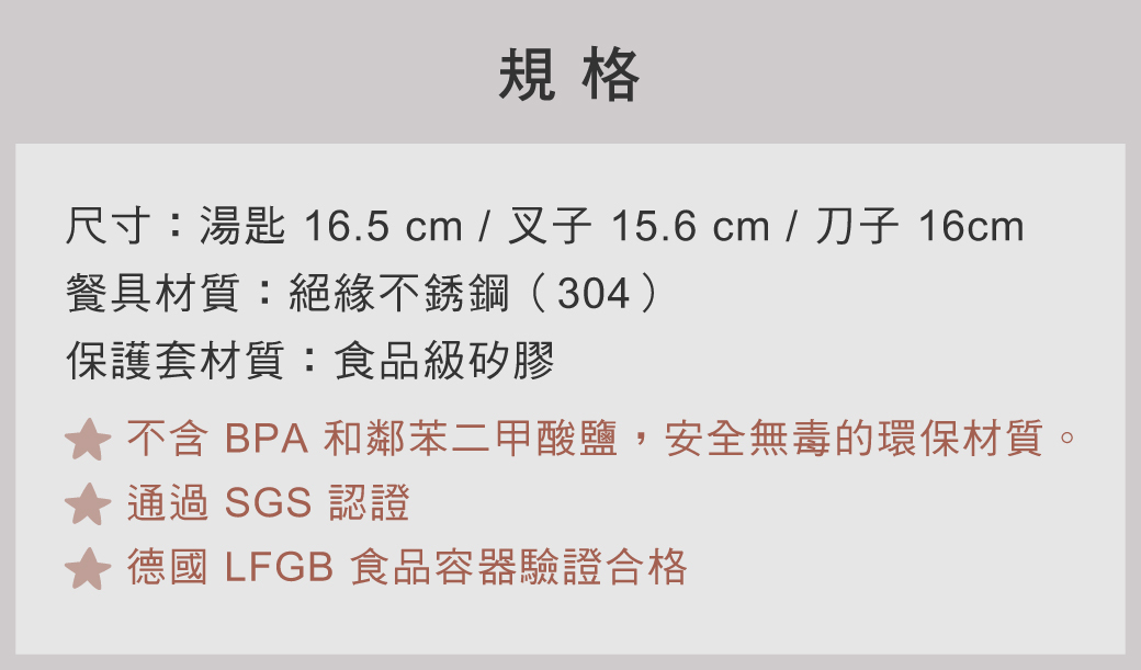 尺寸:湯匙16.5cm / 叉子12.6cm / 刀子16cm