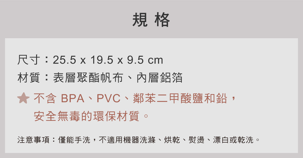 -聚酯帆布外層搭配恆溫鋁箔內層,保溫保冷效果極佳