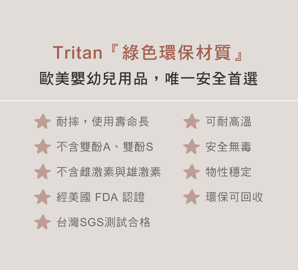 -由 Tritan (歐美嬰幼兒用品指定材料)製成,安全、環保
