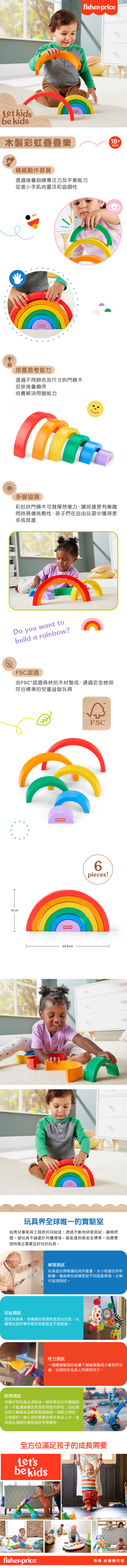 • 費雪木製彩虹疊疊樂讓嬰幼兒培養堆疊技能、並享受樂趣。