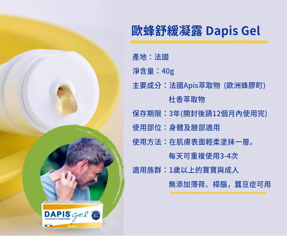 成分:Apis mellifica Extract, Ledum palustre Extract, Aqua,Propylene glycol, Alcohol, Carbomer, Sodium hydroxide
