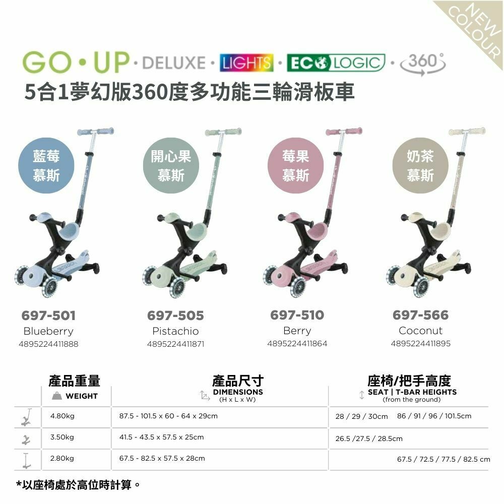 品名:法國 GLOBBER GO•UP 5合1夢幻版360度多功能三輪滑板車