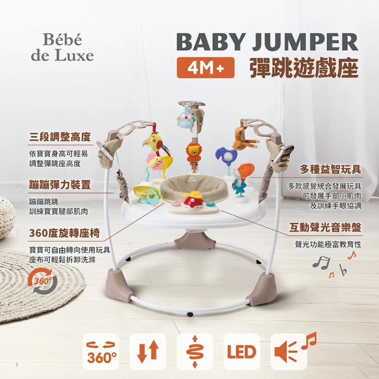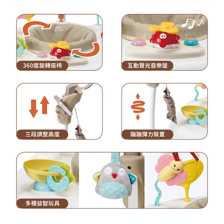 -蹦蹦彈力裝置:訓練寶寶腿部肌肉,360度旋轉座椅讓寶寶可自由轉向使用玩具