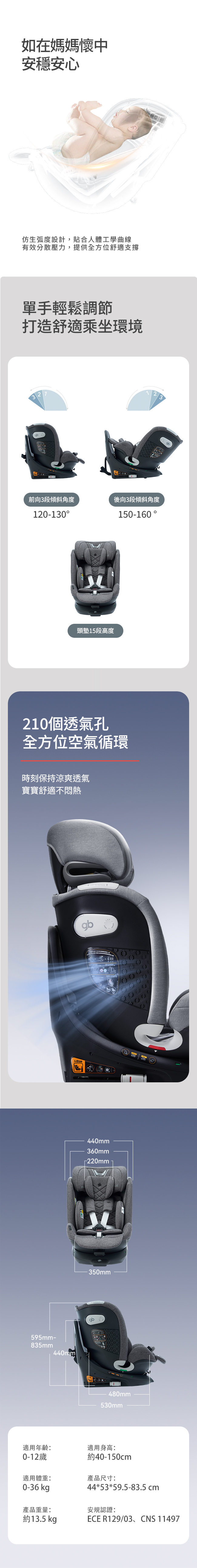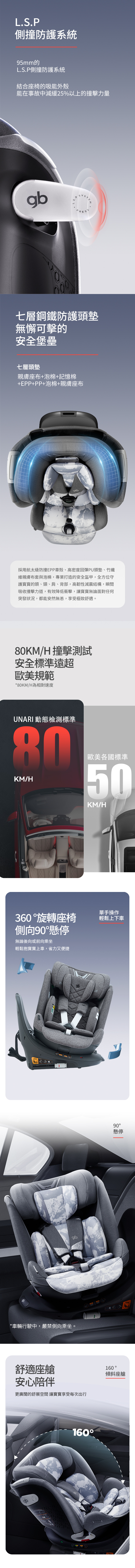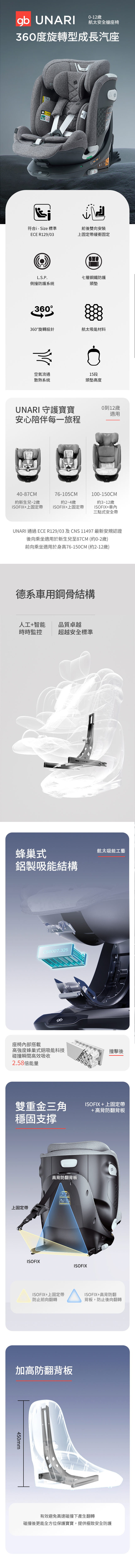 品名:gb UNARI 360度 isofix 旋轉型成長汽座 (0-12歲)
