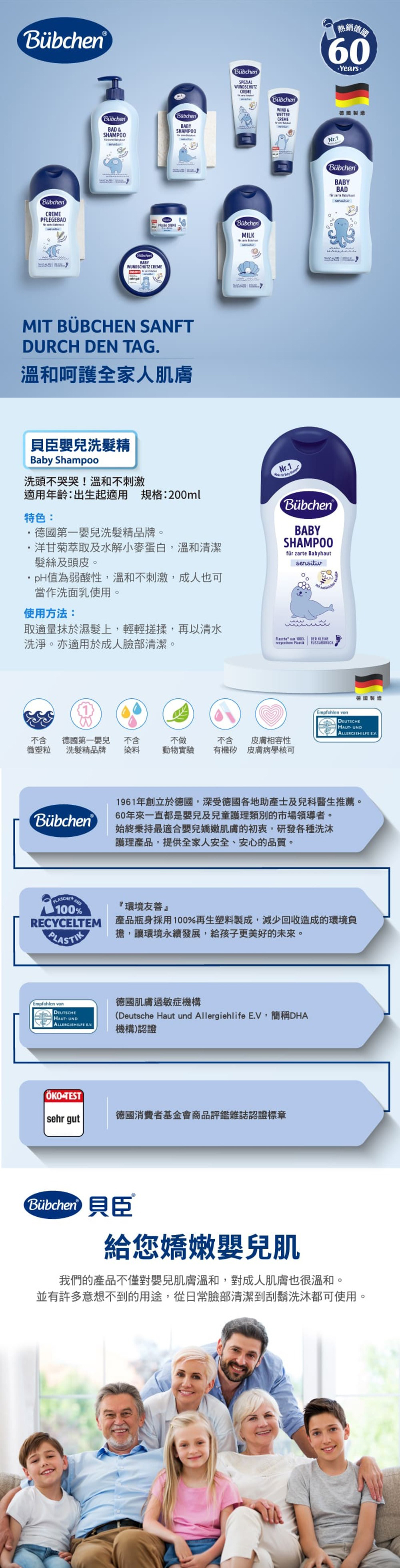 德國 Bubchen 貝臣 嬰兒洗髮精 200ml