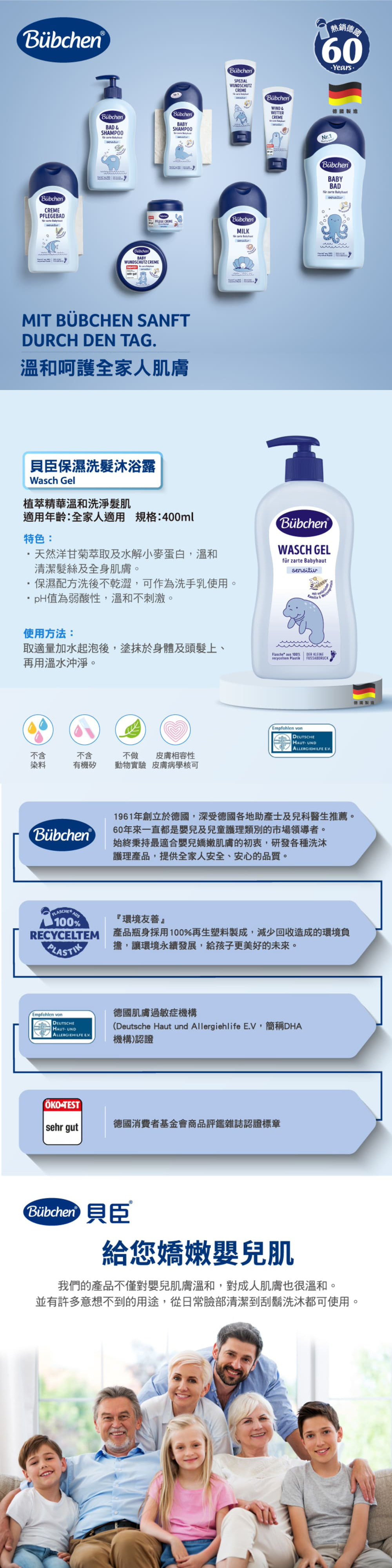 德國 Bubchen 貝臣 保濕洗髮沐浴露 400ml