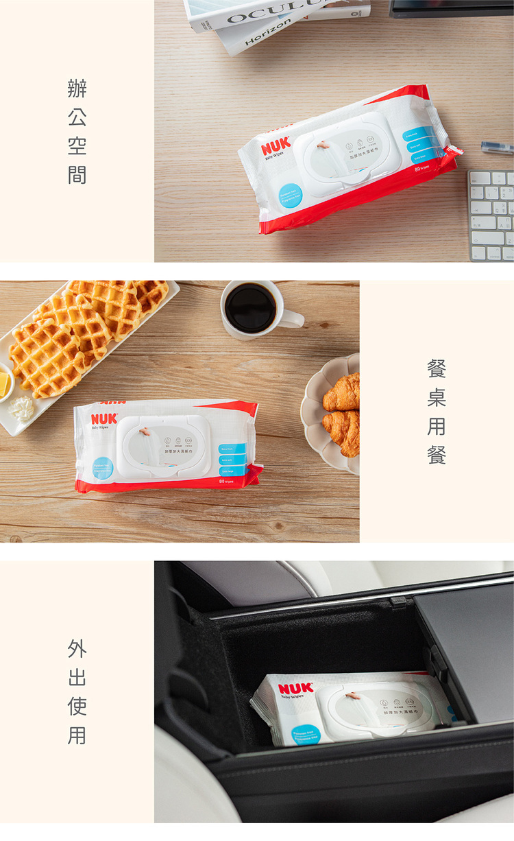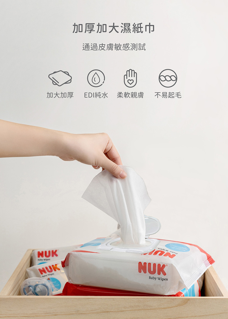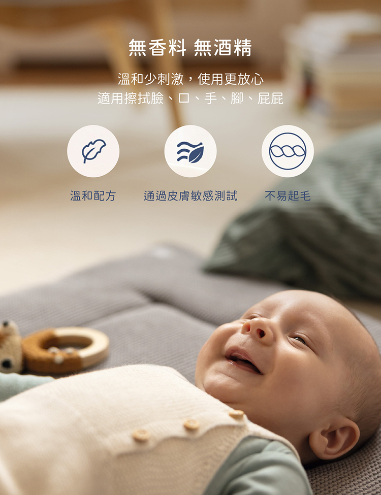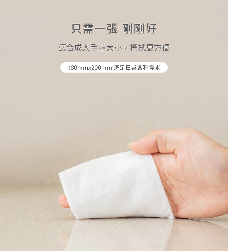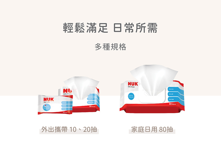 特別加大加厚嬰兒濕紙巾,純棉不織布更柔軟,韌性佳不易掉絮,80抽便於家庭日用、20抽外出攜帶,一張滿足全家使用需求。