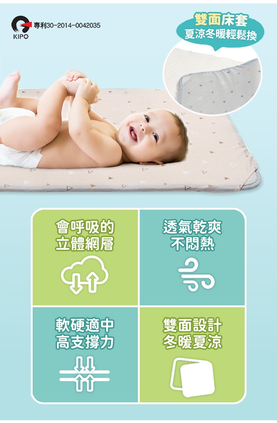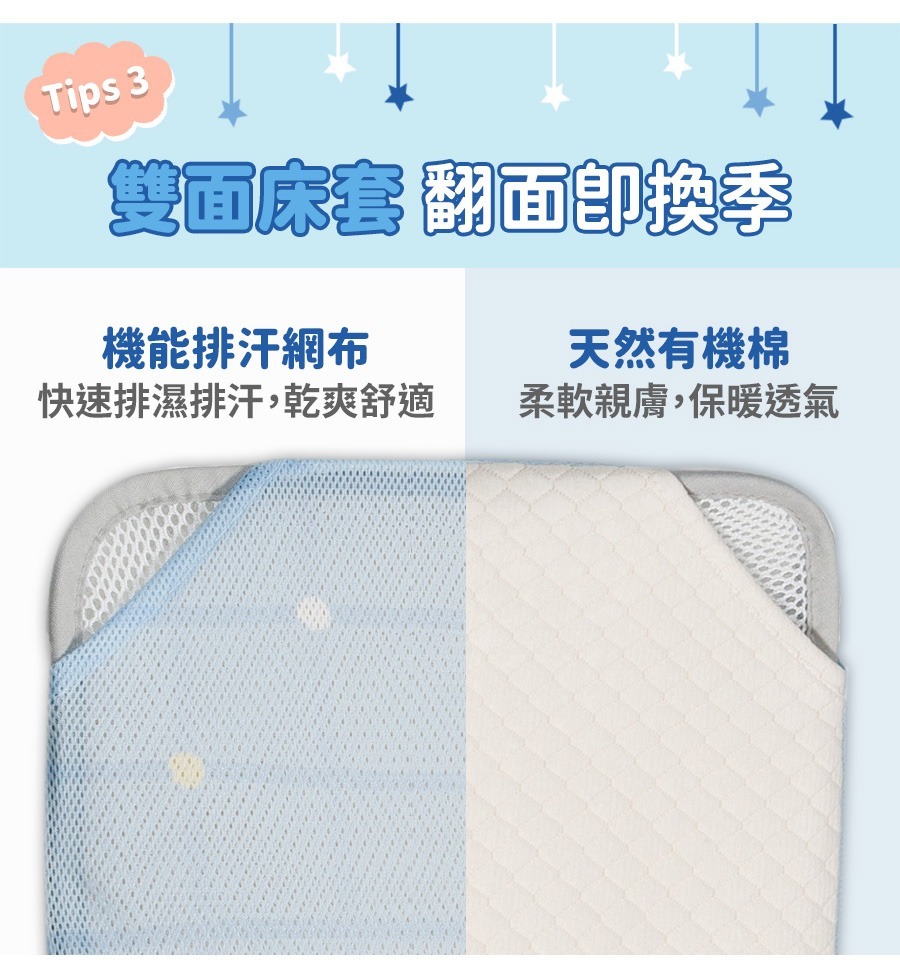 -床套正面:機能性排汗表面,寶寶舒適不悶熱