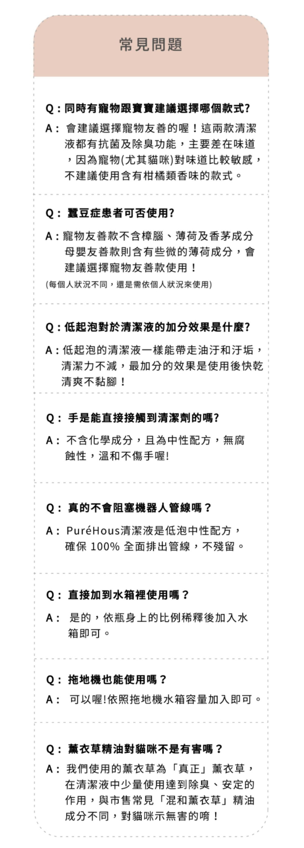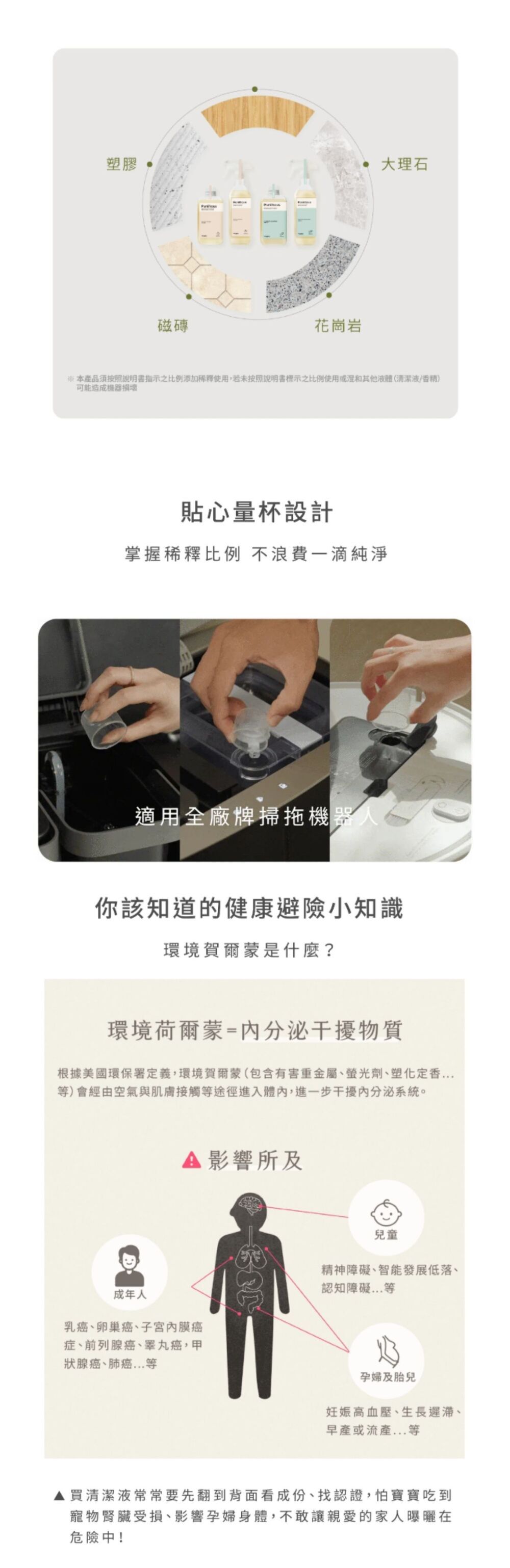 使用方法:本產品為濃縮液,請依照水箱容量以「清潔液:水=1ml:50ml」比例稀釋,直接倒入水箱即可。不須另外搖晃攪拌、不需再用清水拖過。