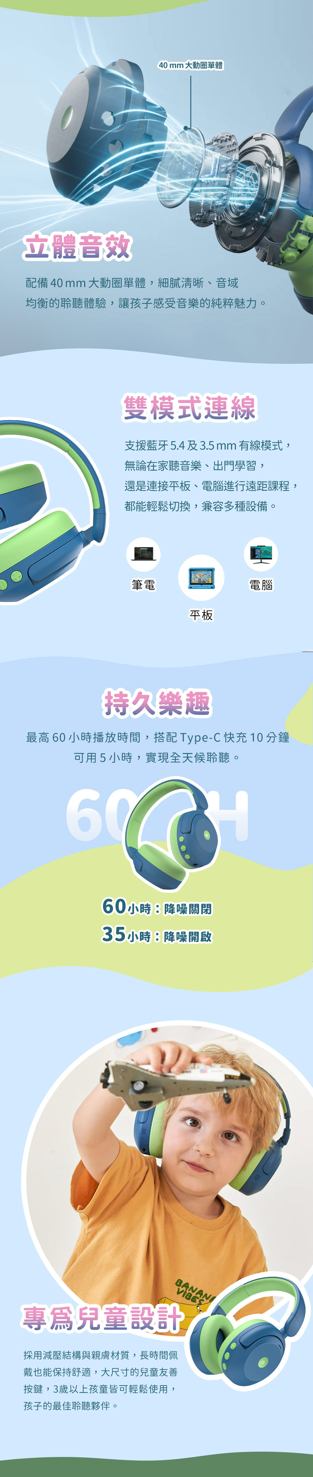 產品名稱:iClever BTH20 無線降噪兒童耳機