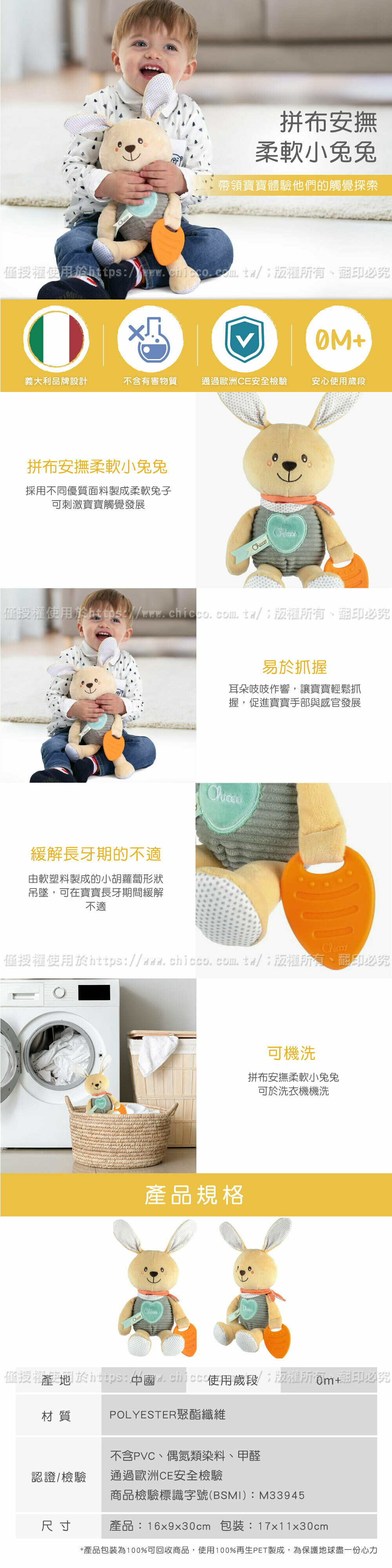 義大利 Chicco 拼布安撫柔軟小兔兔