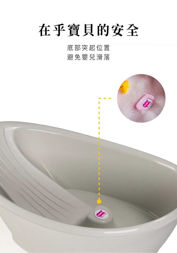 -支撐架上防滑設計,讓寶寶安全沐浴。