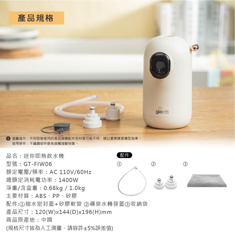 義大利 Giaretti 珈樂堤 迷你便攜式智能即熱飲水機/瞬熱飲水機 (GT-FIW06)