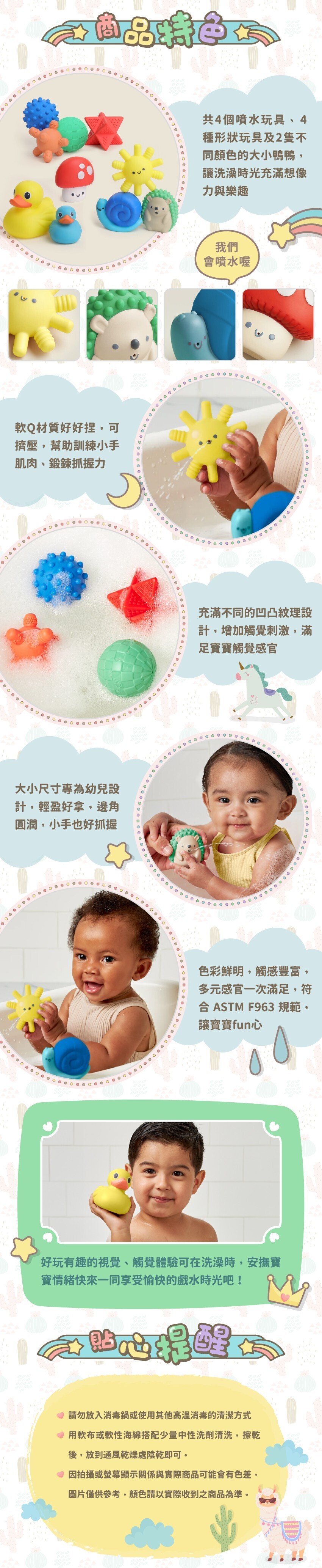 -內含4個噴水玩具、4個形狀玩具、2隻鴨鴨