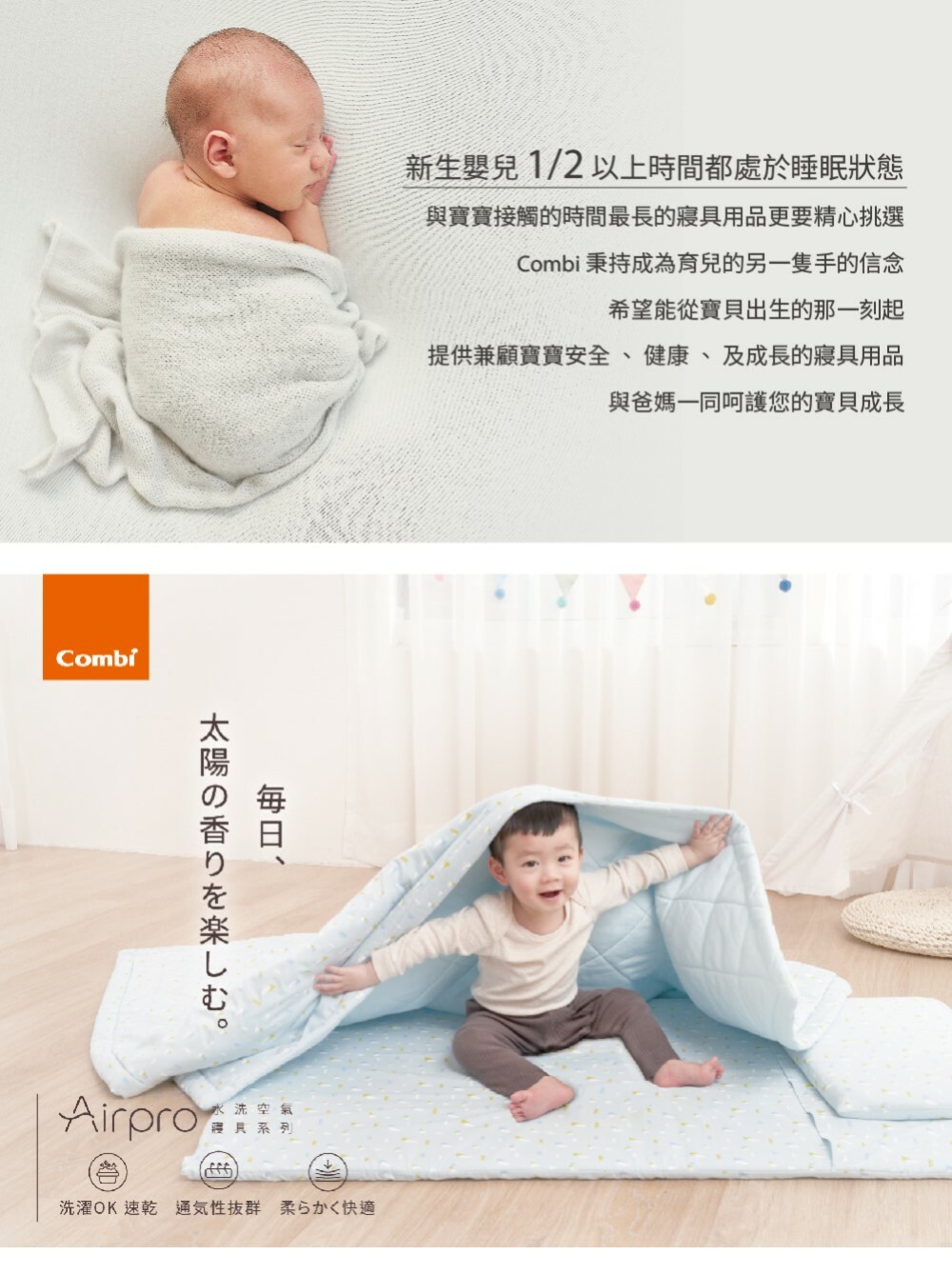 日本 Combi Airpro 水洗空氣枕平枕-多款可選
