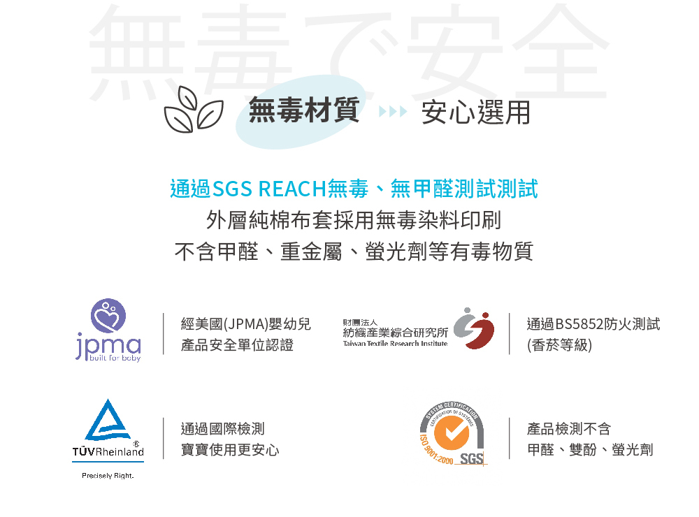 • 通過CNS 15290「紡織品安全規範」
